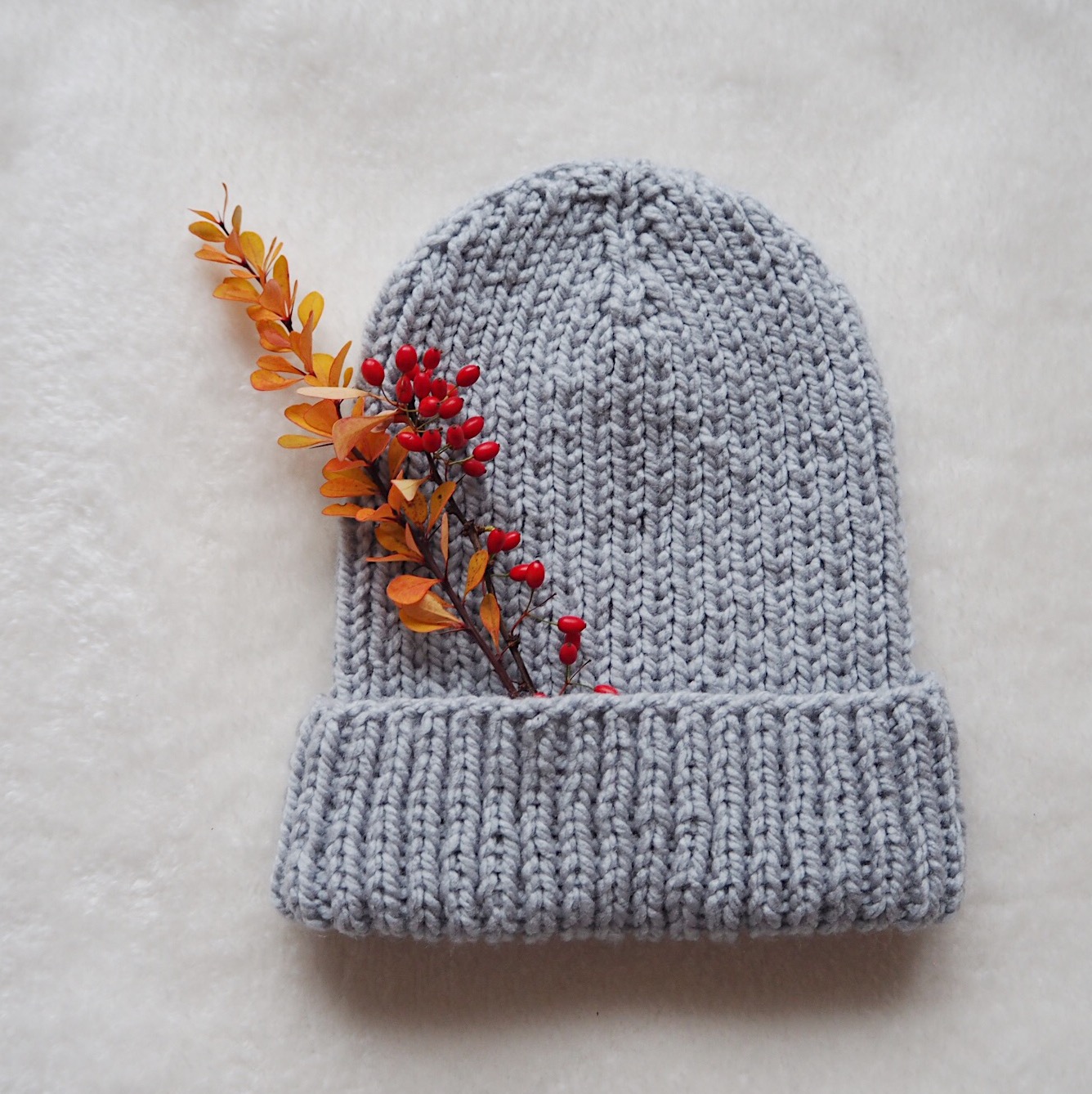 Univerzální velikost, široký ohrnutý lem. Můžete ho nosit libovolně ohrnutý či neohrnovat vůbec, výsledný tvar čepice je tak velmi variabilní.